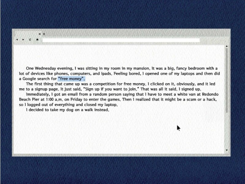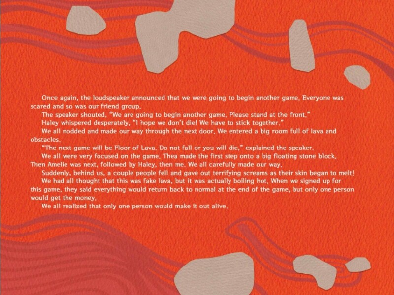 Summary: After teenage Bella half-heartedly answers a mysterious ad for “Free Money”, she and several of her friends find themselves in a violent and cutthroat competition where they may be fighting for something more precious. In this satirical story inspired by dystopian survival shows, what will Bella value most—her friendships or the prize?