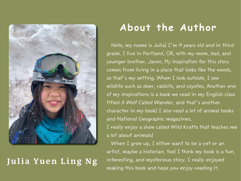 Keywords: forest, mystery, animals, peace, friendship, good vs. evil, forgiveness, morality, investigation